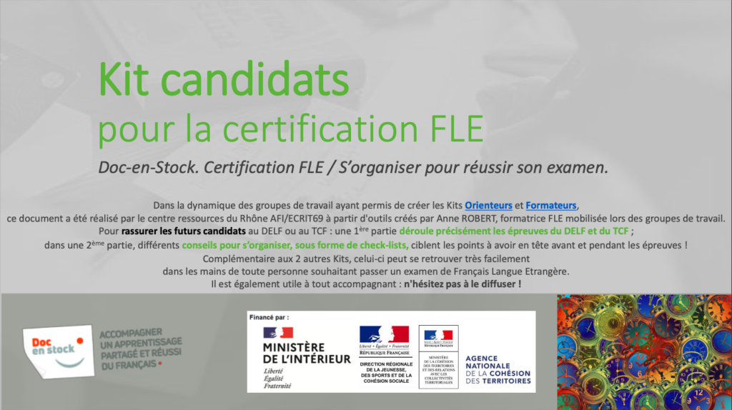 A l’issue du webinaire Doc En Stock d’avril 2021 sur les certifications en Français Langue Étrangère (tests et diplômes de FLE), deux groupes de travail se sont formés afin de réfléchir aux informations et aux conseils indispensables pour :